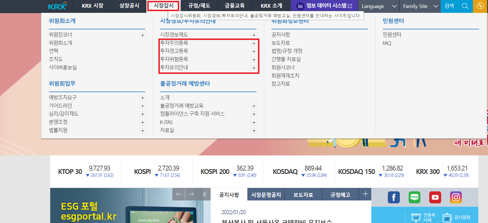현재 주식시장의 투자경고 종목은 한국거래소 홈페이지에서 확인이 가능합니다.