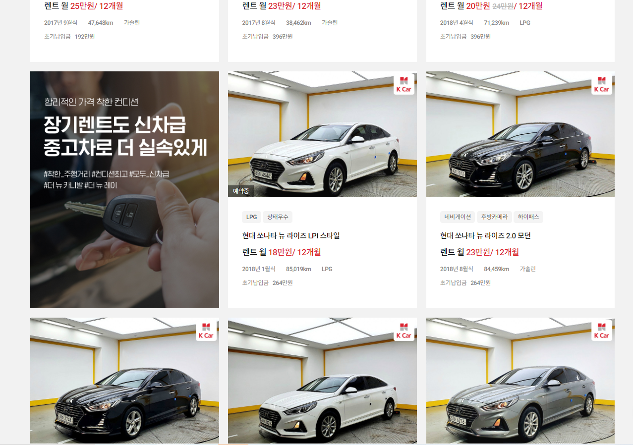 제게 가장 중요한 부분이었는데요, 나머지 기업들은 모두 중고차 렌트가 최소 24개월이더라구요.