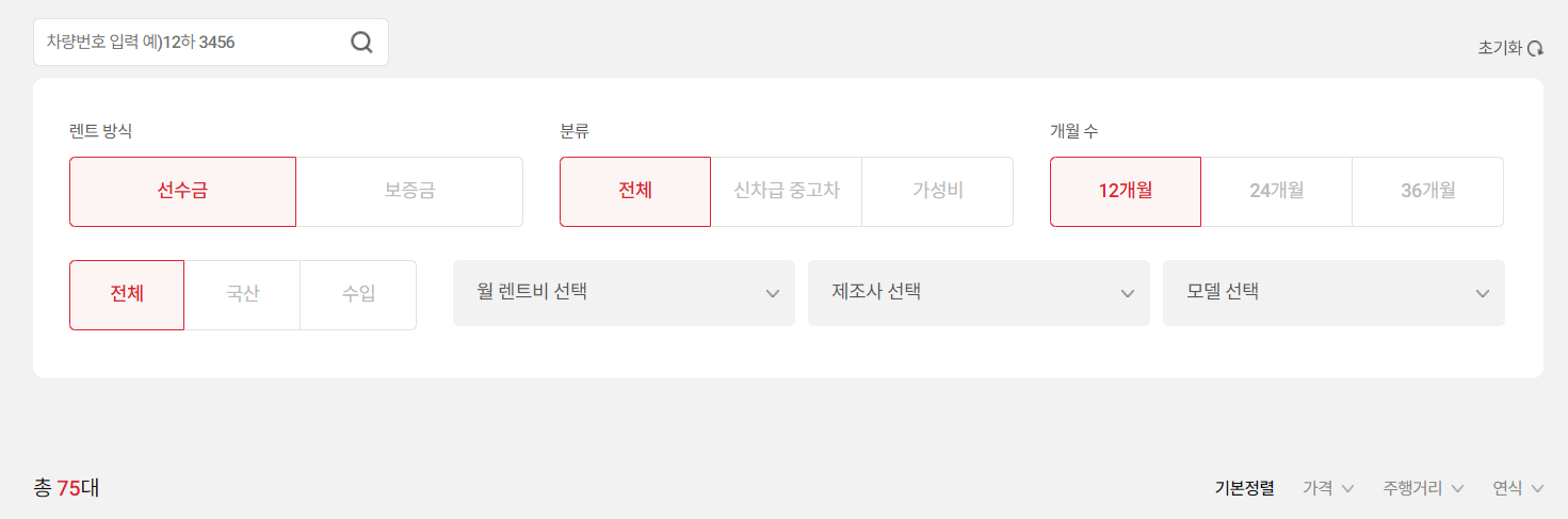 중고차 렌트 링크를 들어가보시면 여러가지를 먼저 고르셔야합니다.