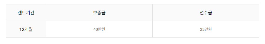 아래 표와 같이 보증금은 월 40만원, 선수금은 월 25만원을 지불하는 것입니다.