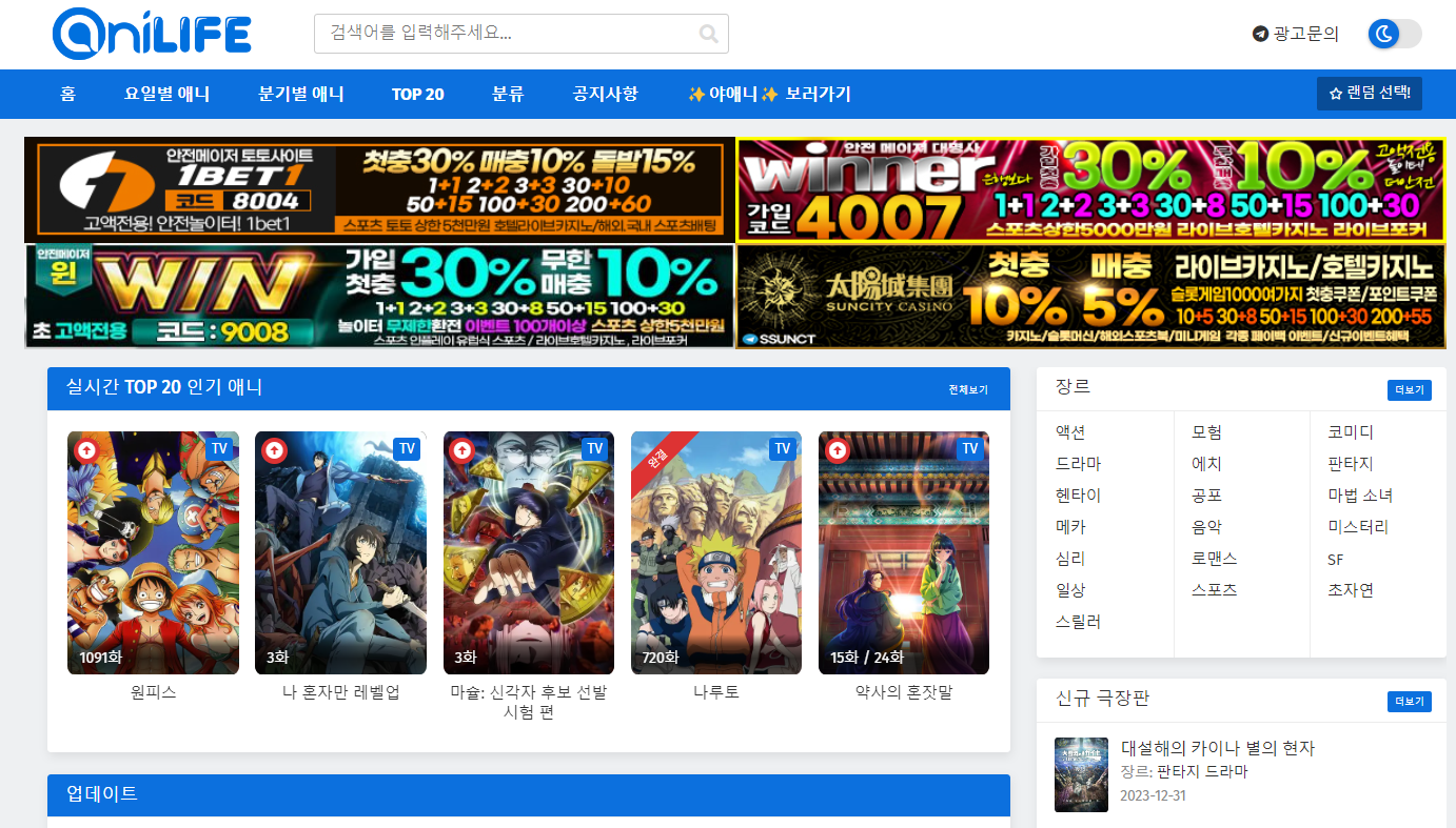 요즘 귀멸의 칼날, 주술회전 등등 여러가지 애니들이 엄청나게 인기가 많죠? 그래서 애니를 볼 수 있는 곳을 찾으시는 분들이 굉장히 많은 것으로 알고 있습니다. 이런 분들에게는 애니라이프를 적극 추천드립니다!