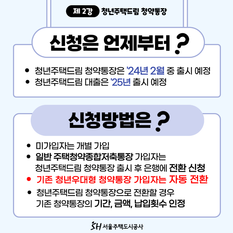 현재 청년우대형 가입자는 청년 주택드림 통장 가입자격 여부와 상관없이 자동으로 전환가입이 가능합니다
