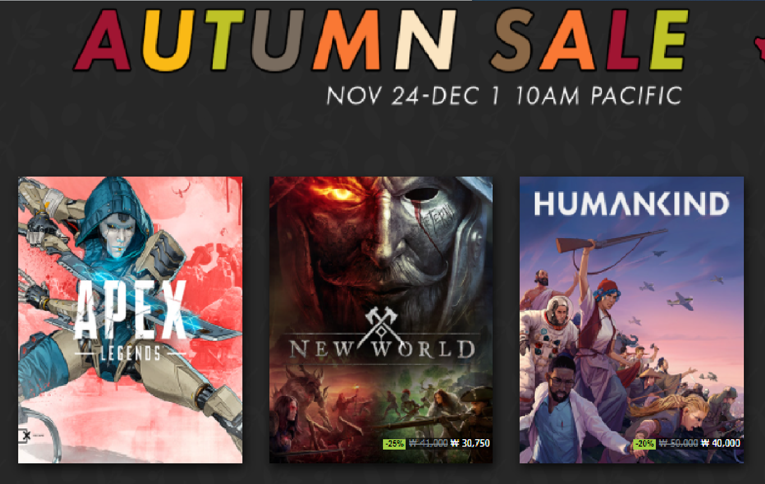 The Steam Autumn Sale is on now! Find great deals on thousands of games! Plus nominate your favorite games in the 2021 Steam Awards.