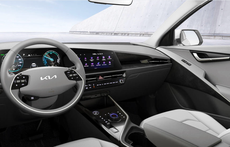 굉장히 이쁘지 않나요? 슬림한 대시보드와 도어를 연결하는 대각선의 디자인이 뭔가 굉장히 안정감을 주는거 같네요. 대시보드에서 도어트림으로 이어지는 대각선 사이에 와이드한 디스플레이를 배챘고 검은색의 센터 콘솔에 최근 기아 모델에 다들 들어가는 전자식 변속 다이얼을 넣어서 하이테크 이미지를 구축했네요